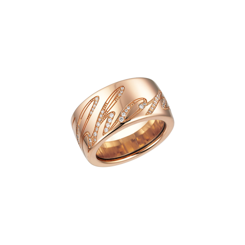 Chopardissimo embodies the spirit of the Maison. Enhanced by the calligraphy of the Chopard logo and its harmonious proportions, this collection is resolutely voluptuous and timeless.
