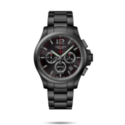 Boîtier Forme: Rond Matière: Revêtement en PVD noir Glace: Glace saphir résistante aux rayures, avec plusieurs couches de revêtement antireflet Fond: Vissé Dimension: Ø 44.00 mm Entrecorne: 22 mm Épaisseur: 12.50 mm Etanchéité: Etanche à 5 bar