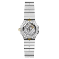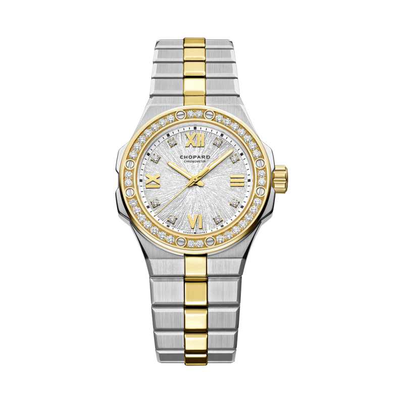 Alpine Eagle est une collection Chopard sportive contemporaine aux lignes épurées et à la mécanique sophistiquée. La collection accueille un nouveau modèle de 33 millimètres de diamètre associant pour la première fois l'éclat du métal Lucent Steel™ au scintillement de l'or jaune. Inspiré de la beauté de la nature, ce modèle étincelant est doté d'un cadran « Gris de Vals » dont la pureté est rehaussée par des index sertis de diamants. Sans compromis en termes d'expertise technique, il est équipé du mouvement à remontage automatique Chopard 09.01-C assurant une réserve de marche de 42 heures.